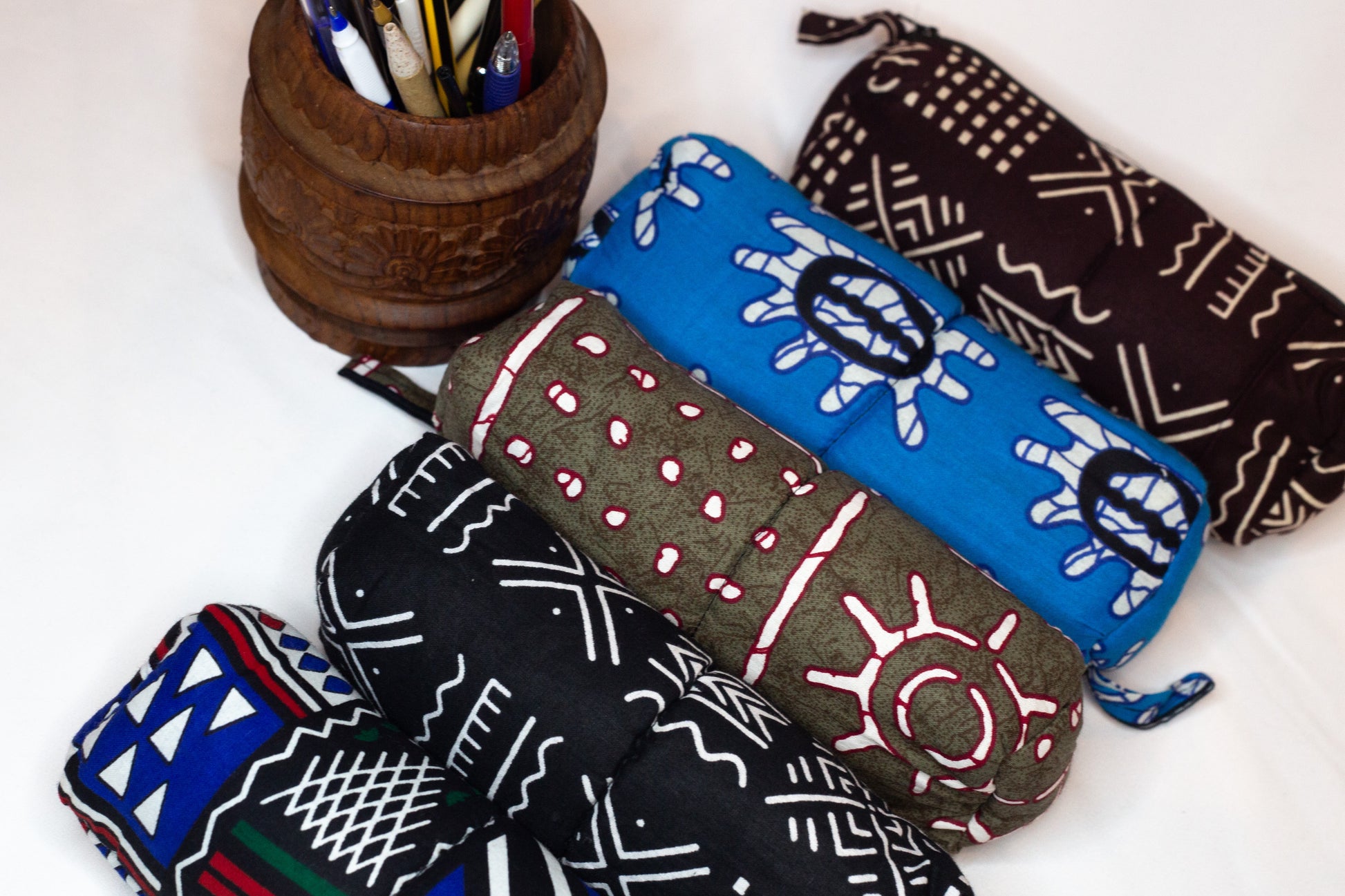 PraticitĂ e stile si incontrano in questi astucci rivestiti in tessuto wax, ideali per chi cerca un accessorio versatile e capiente senza rinunciare a un design unico.
