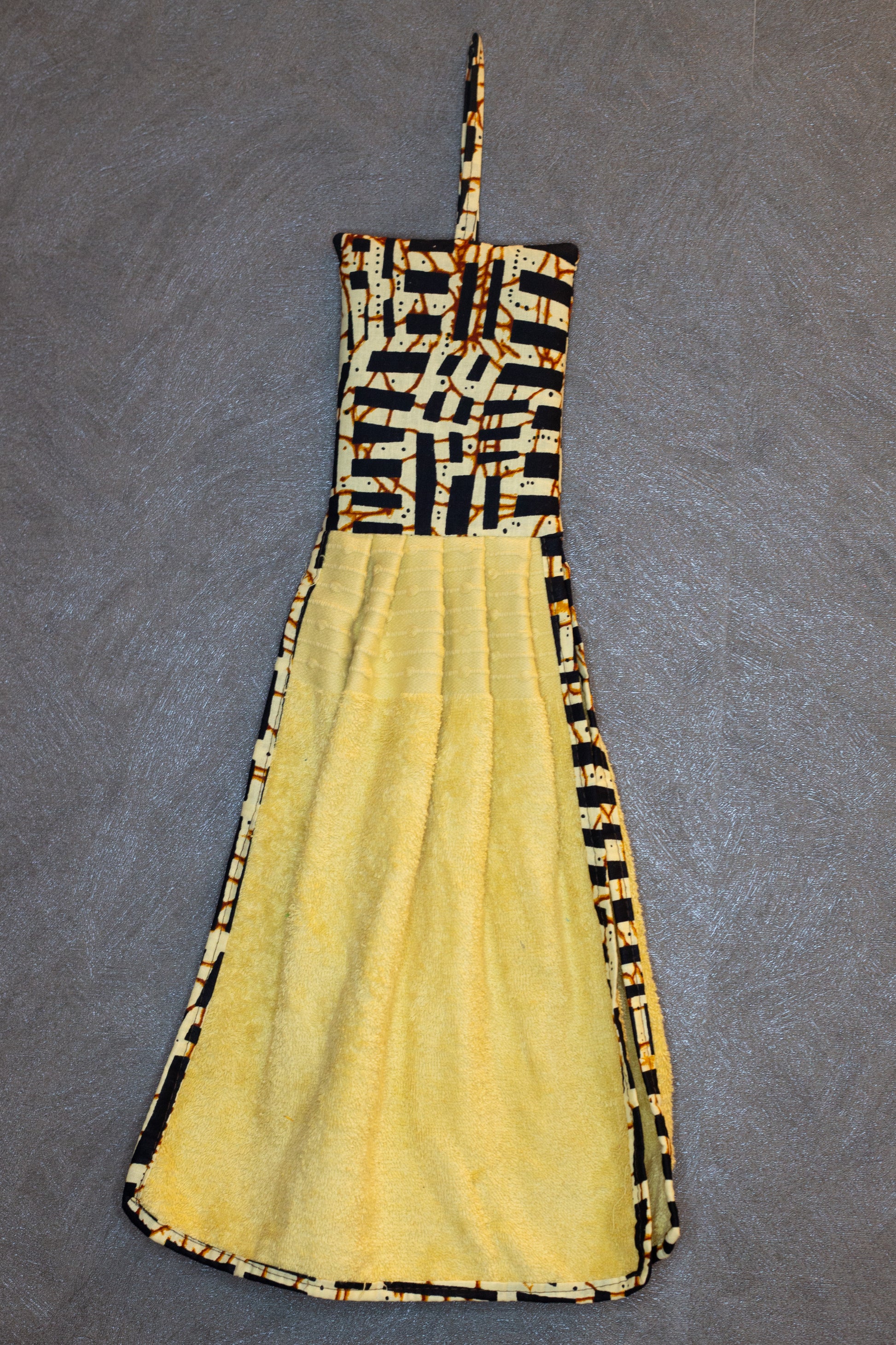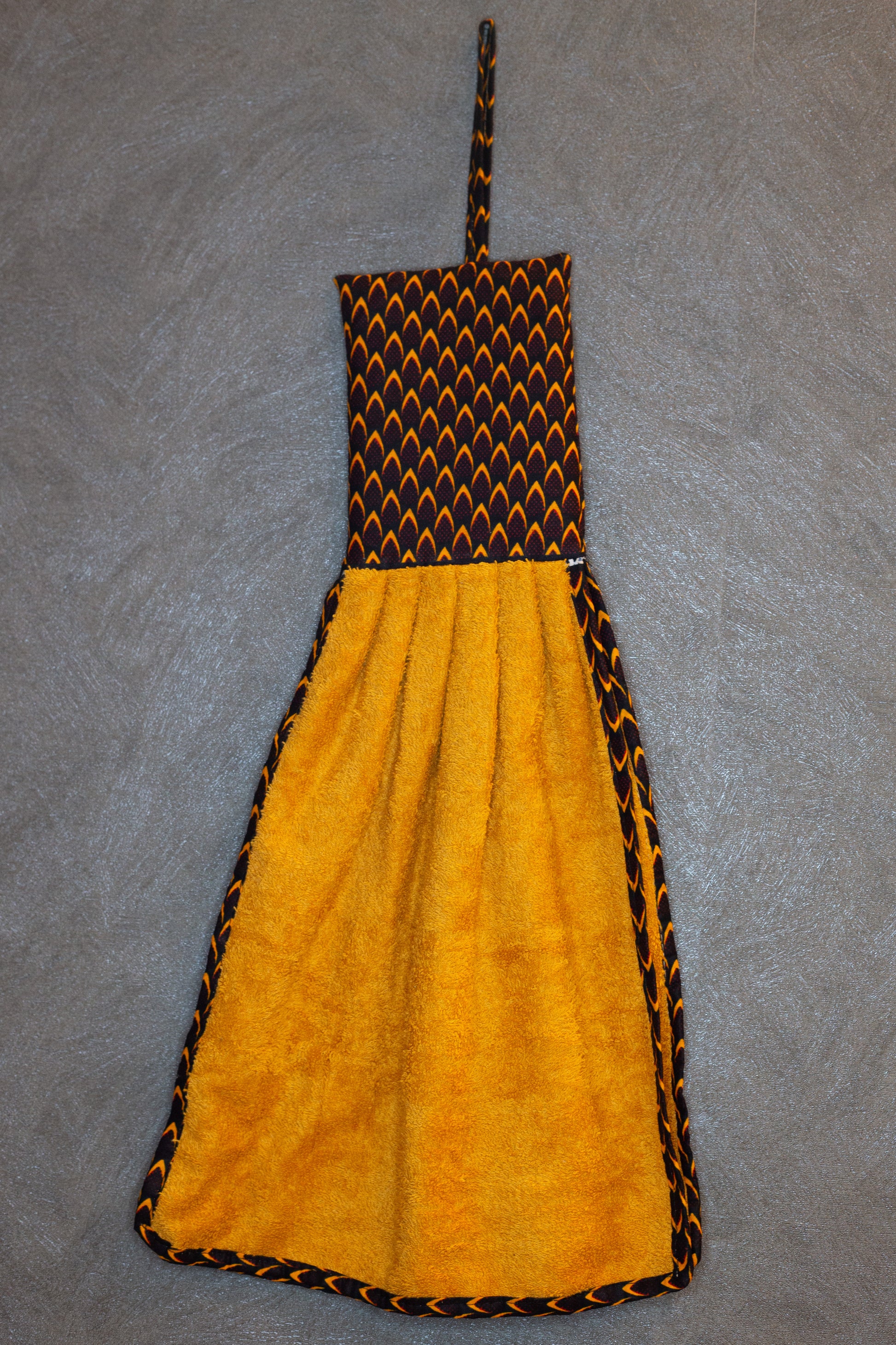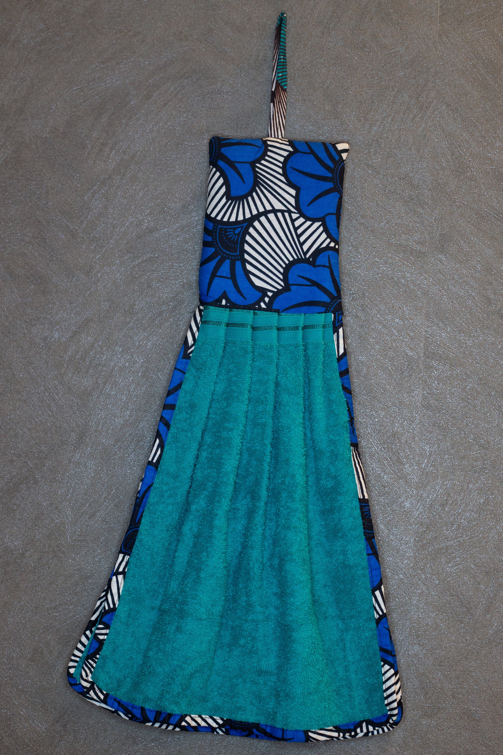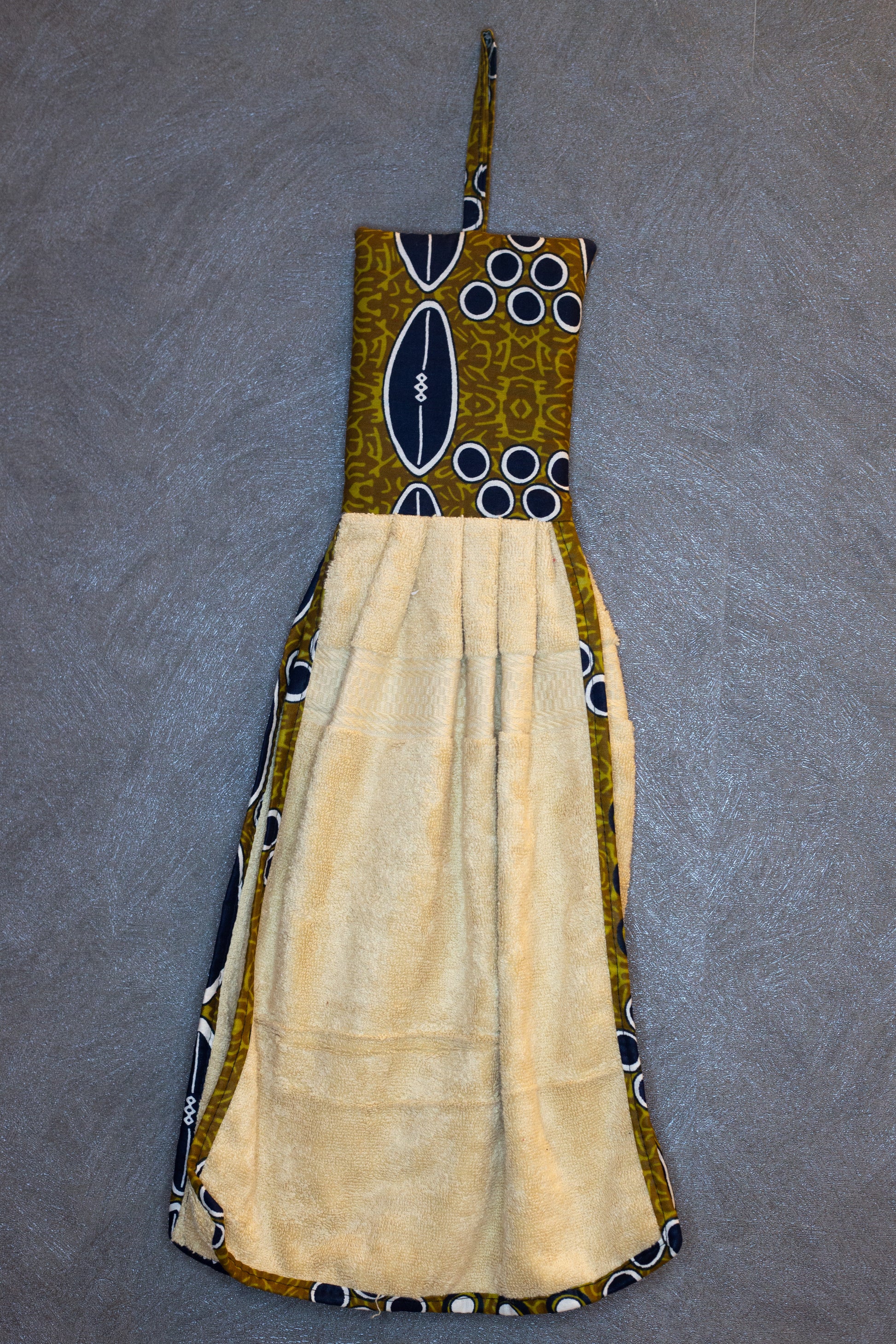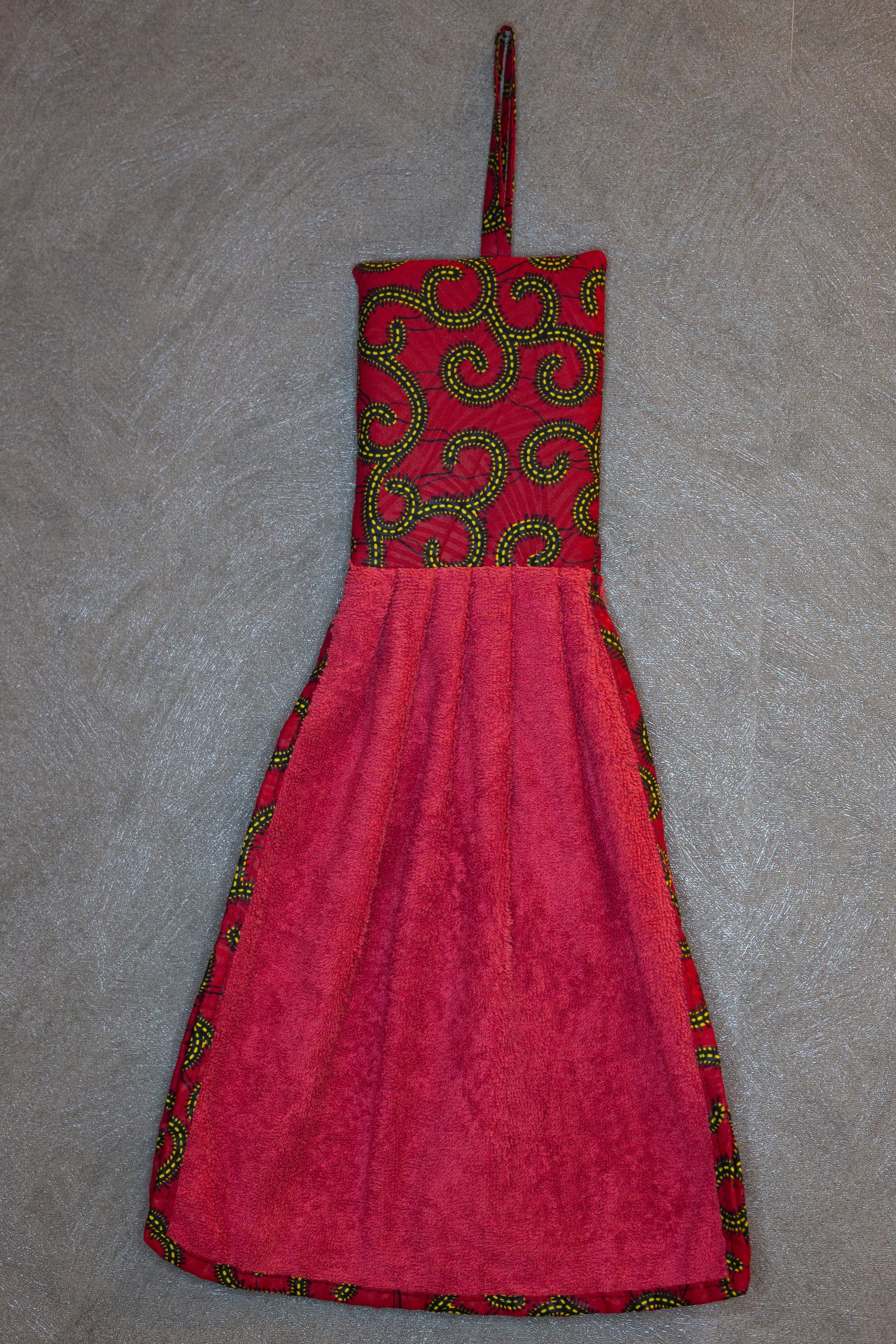 Aggiungi un tocco afro e vivace alla tua cucina con i nostri strofinacci artigianali. Ogni pezzo è unico: ogni asciugamano ha un colore diverso, abbinato con cura a una fascia superiore in tessuto wax, che richiama armoniosamente la tonalità principale.