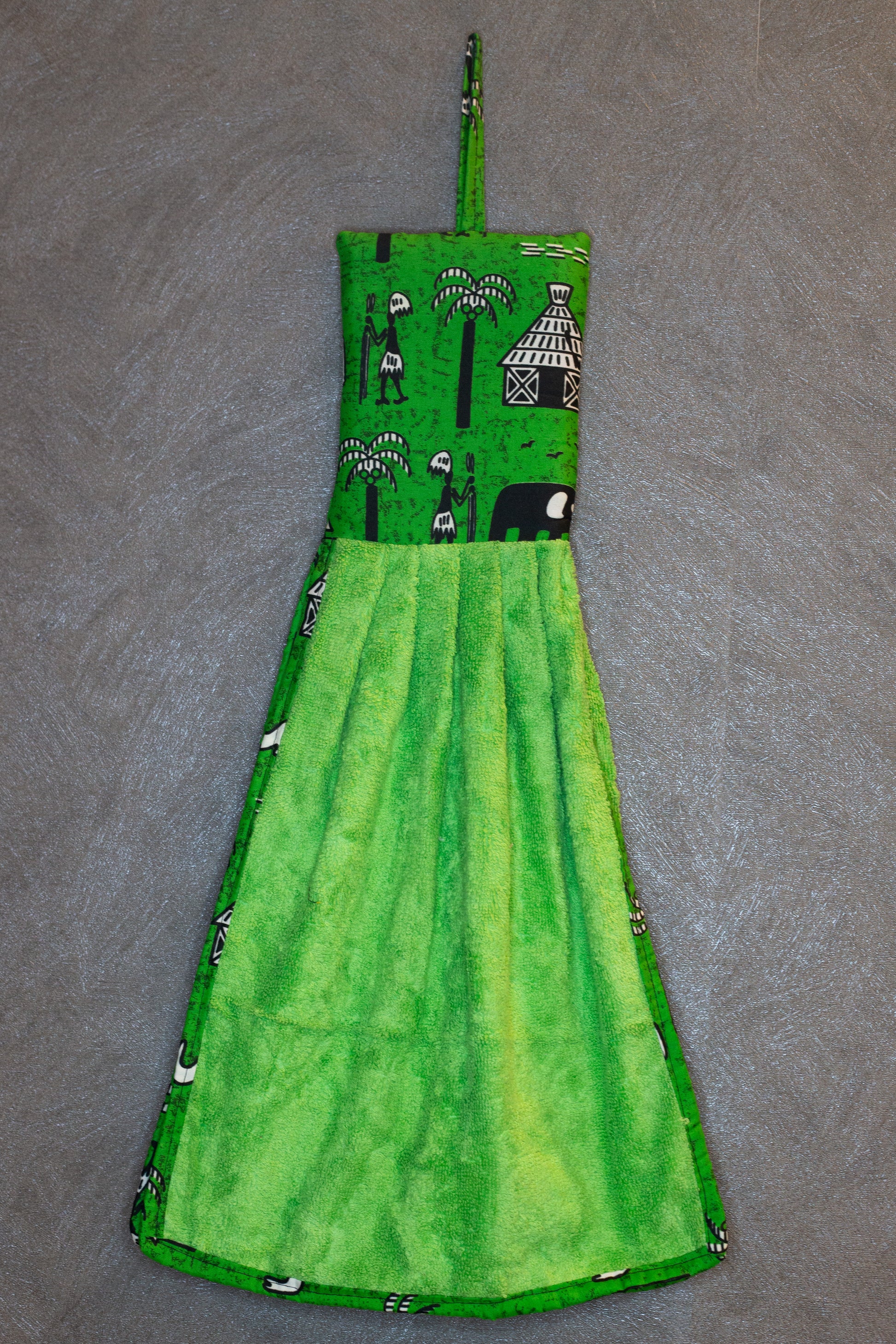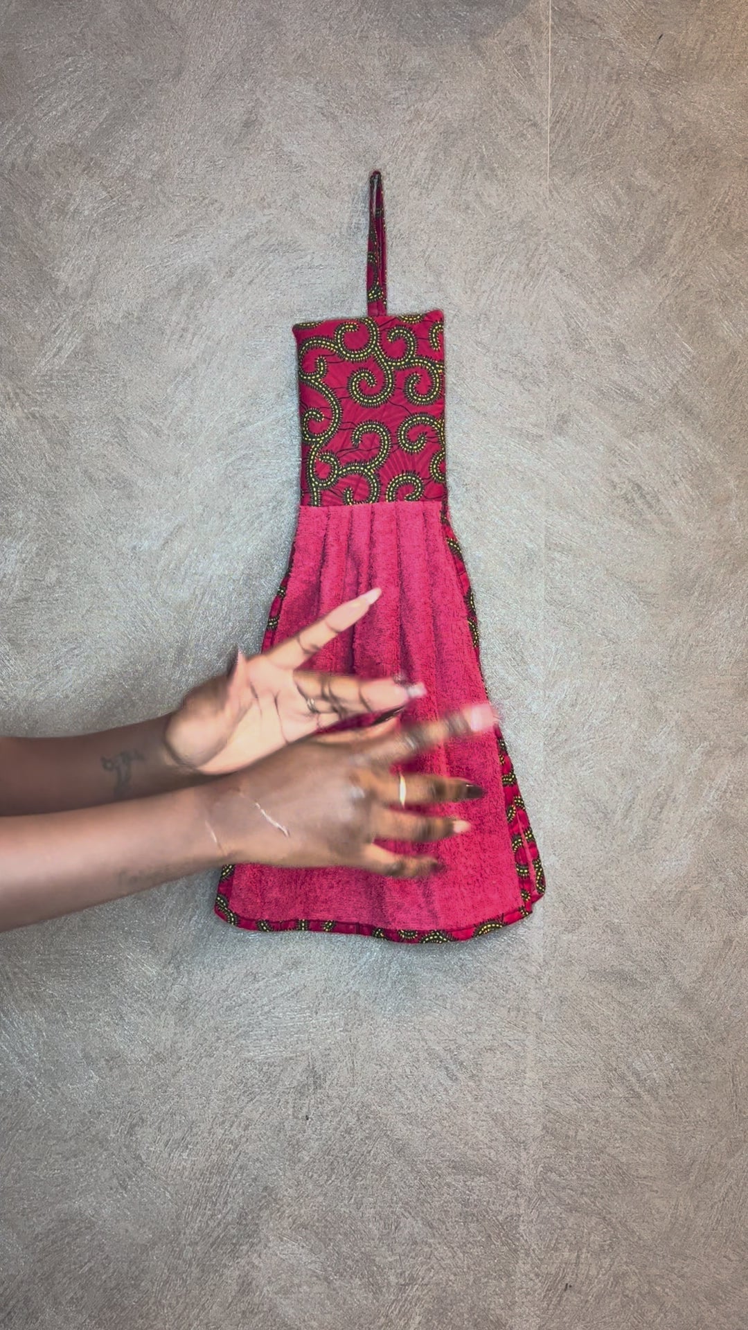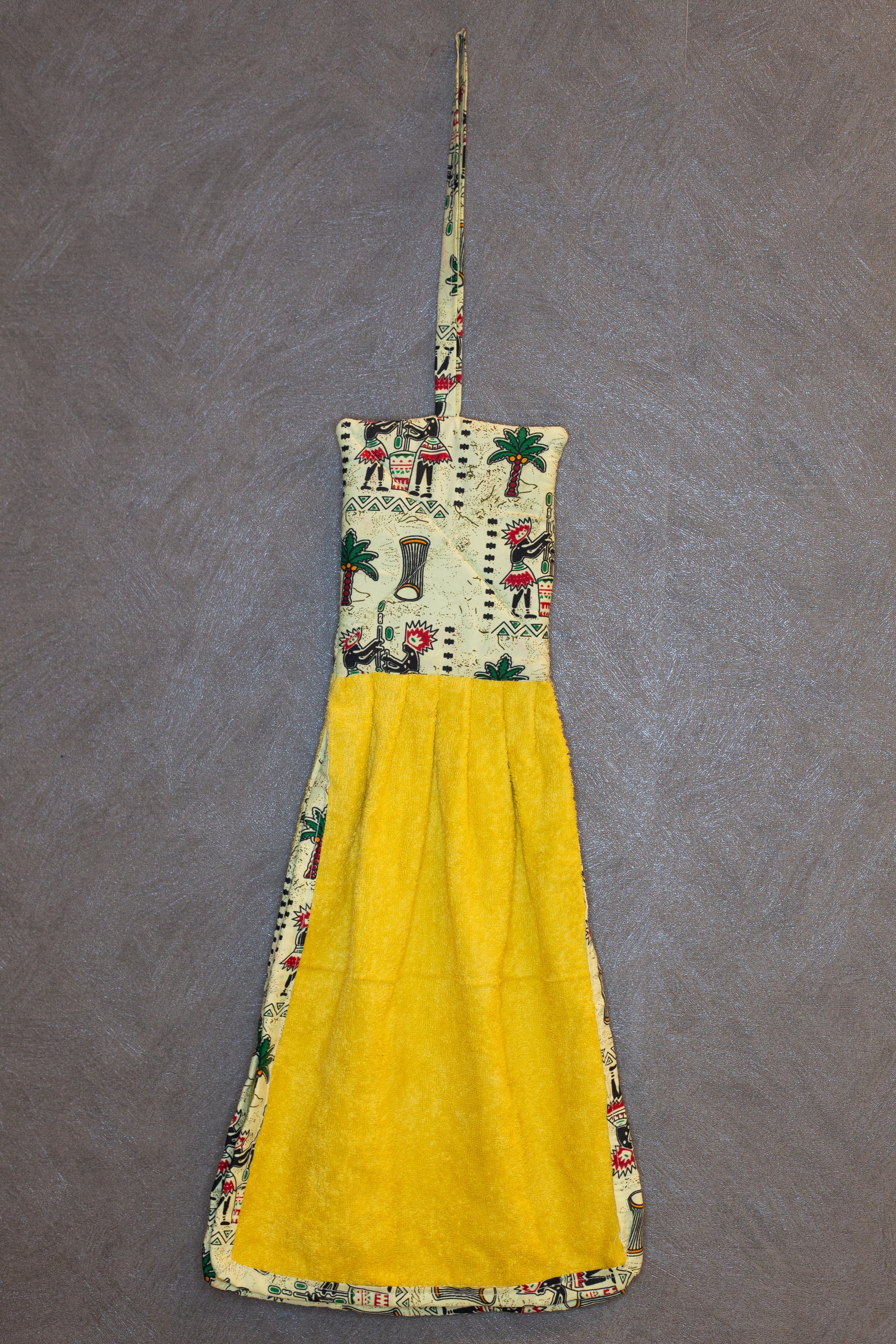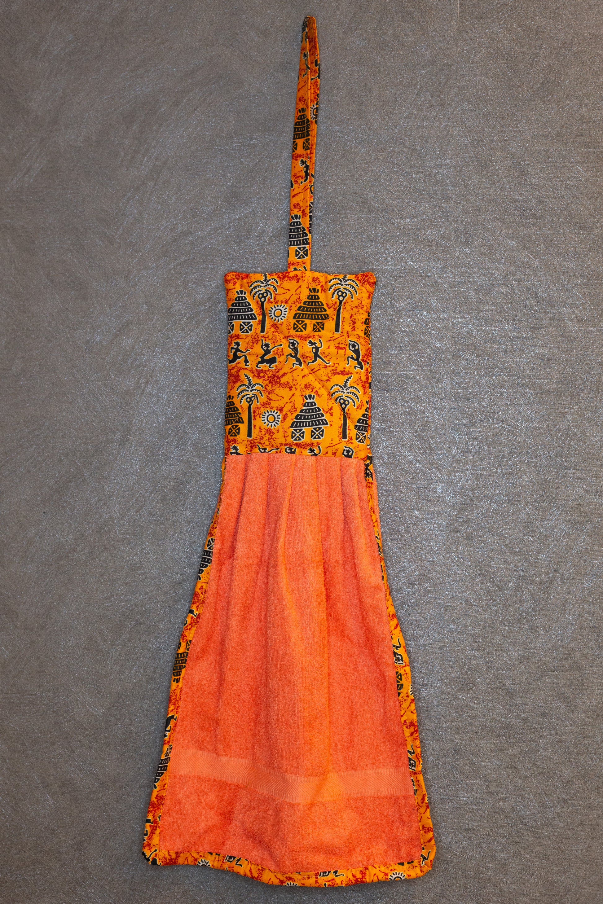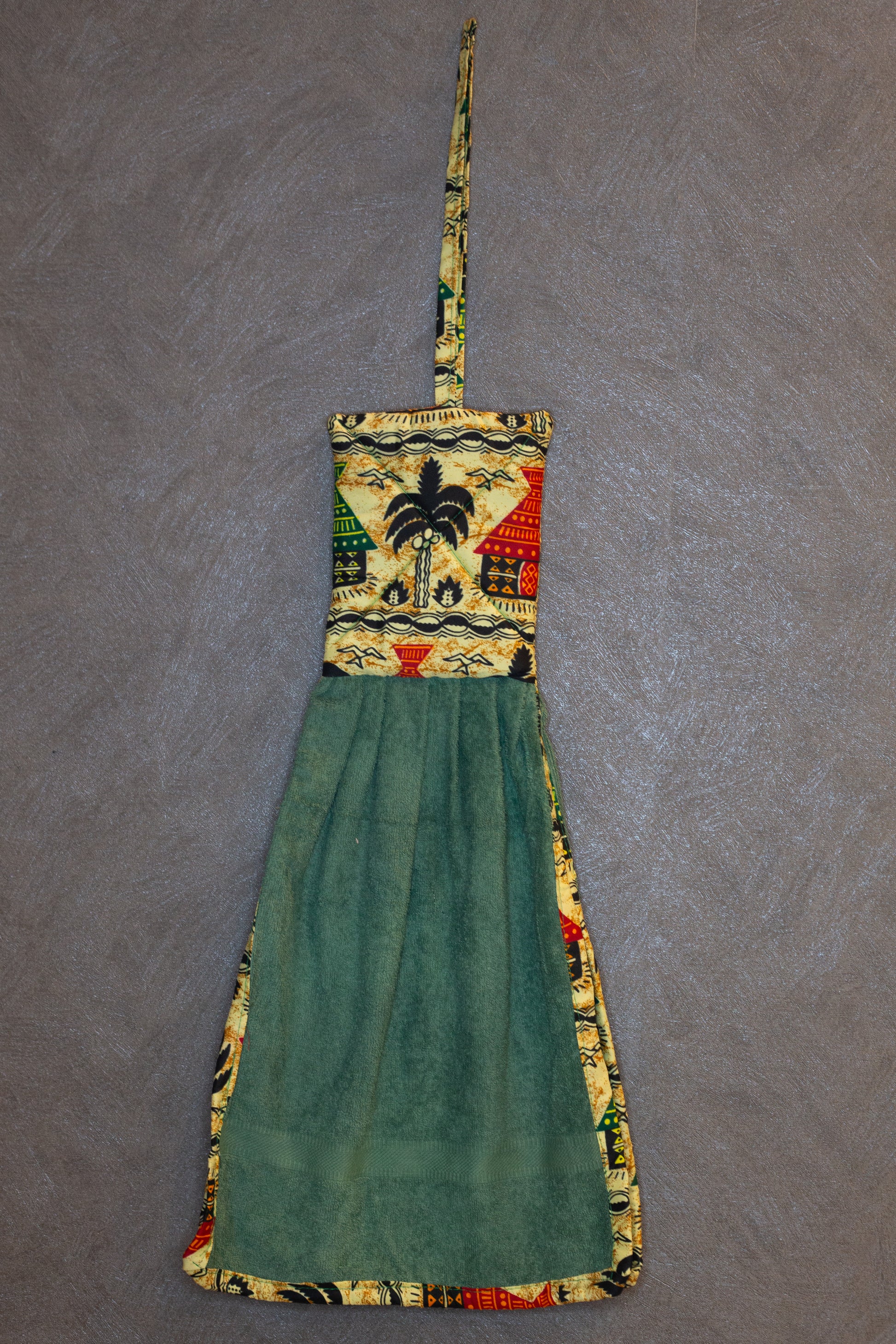 Aggiungi un tocco afro e vivace alla tua cucina con i nostri strofinacci artigianali. Ogni pezzo è unico: ogni asciugamano ha un colore diverso, abbinato con cura a una fascia superiore in tessuto wax, che richiama armoniosamente la tonalità principale.